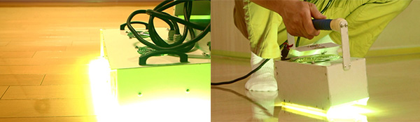 UV照射機の出力の高さが、フロアコーティングの美しい仕上がりと耐久性に関係しているそう